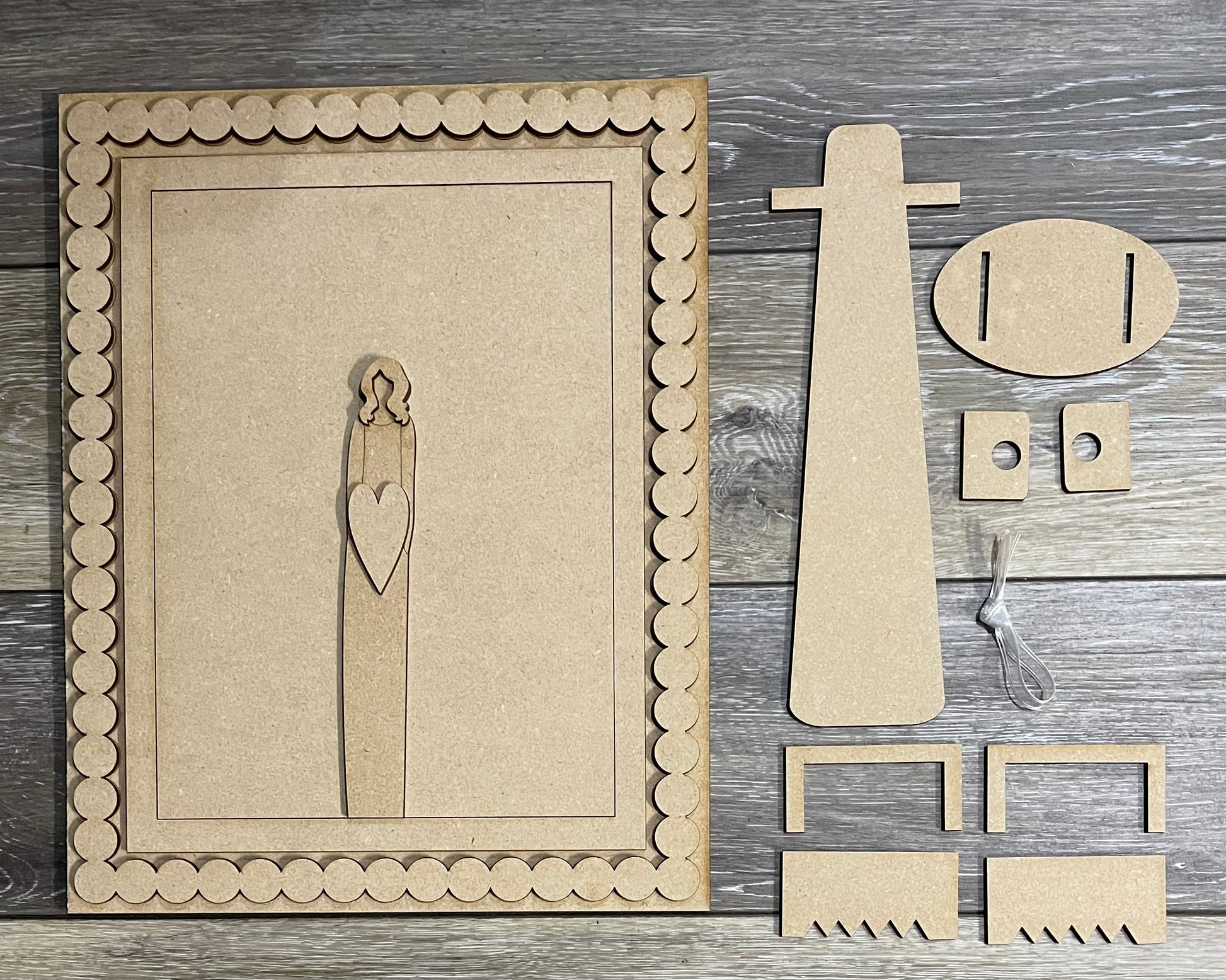 Painterly Angel with frame - wood pieces, unpainted wood cutouts, ready for you to paint, wings are not included