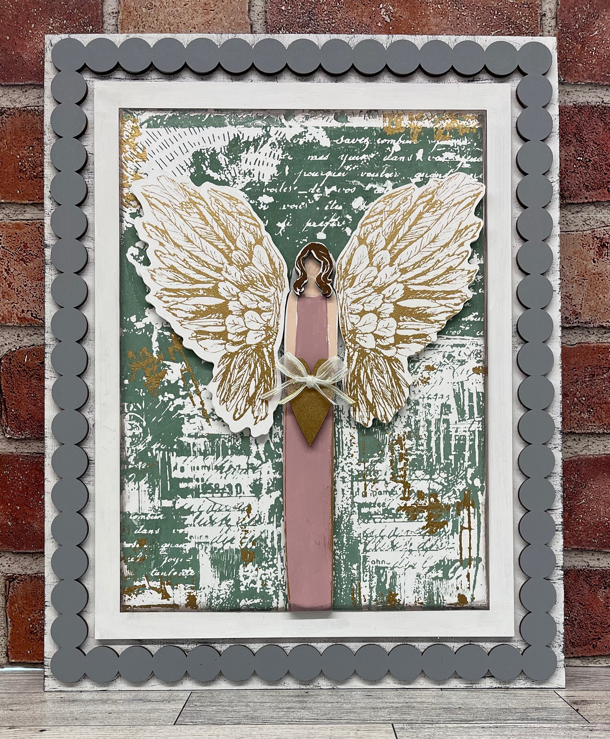 Painterly Angel with frame - wood pieces, unpainted wood cutouts, ready for you to paint. The wings are not included since I cannot sell Chalk Couture product on this website. If you need that, please send me a message and you can get it from me another way.