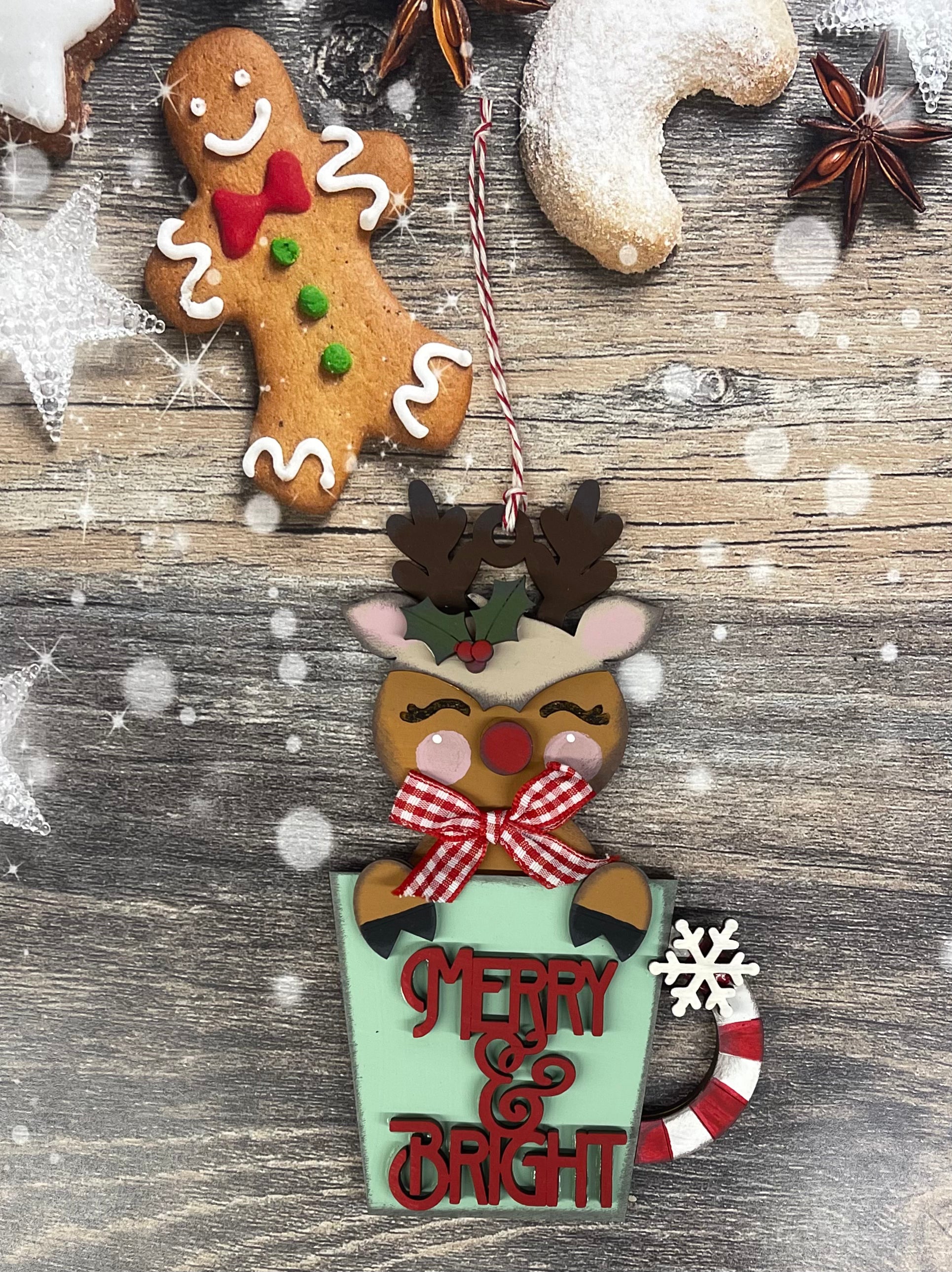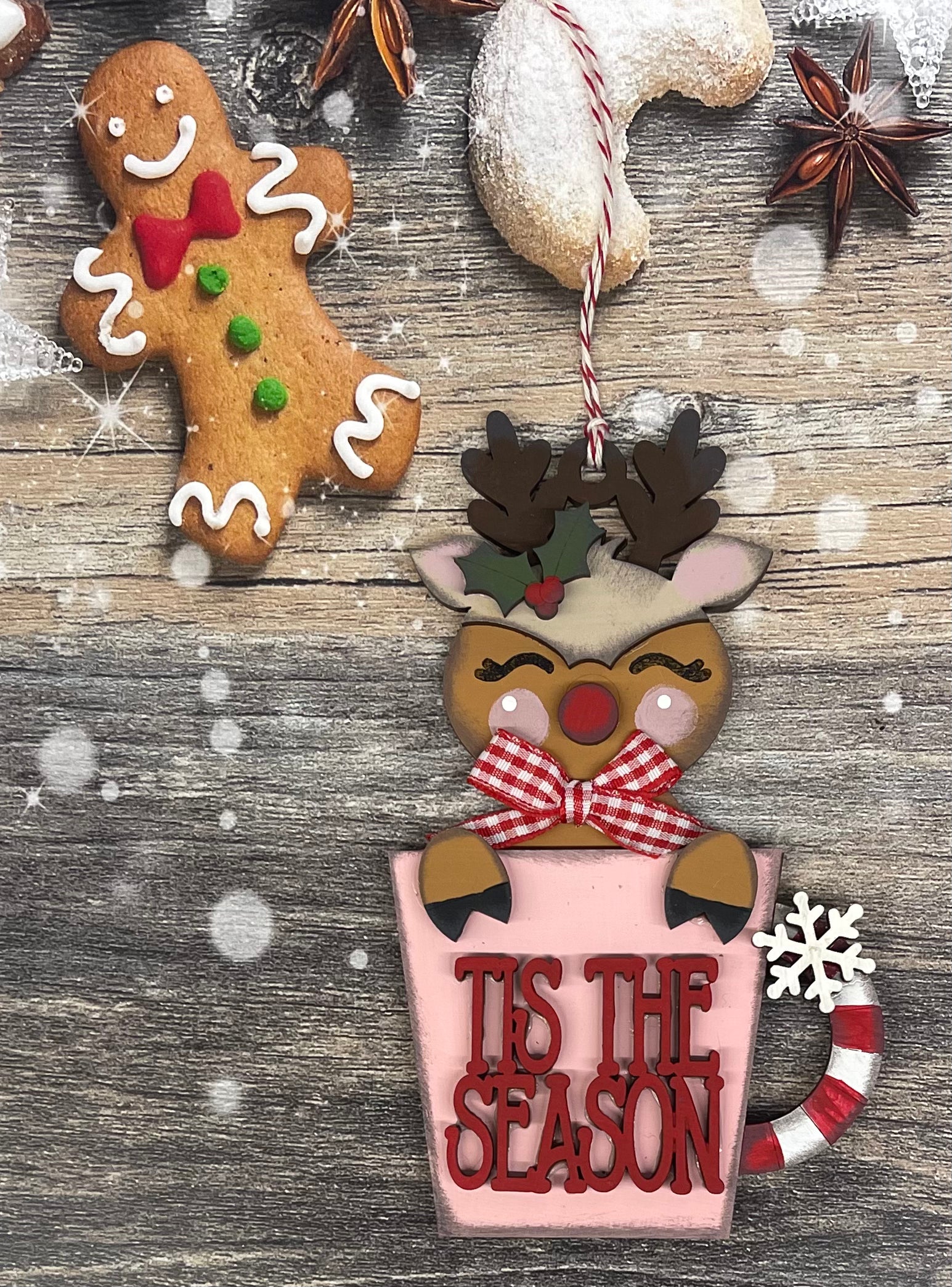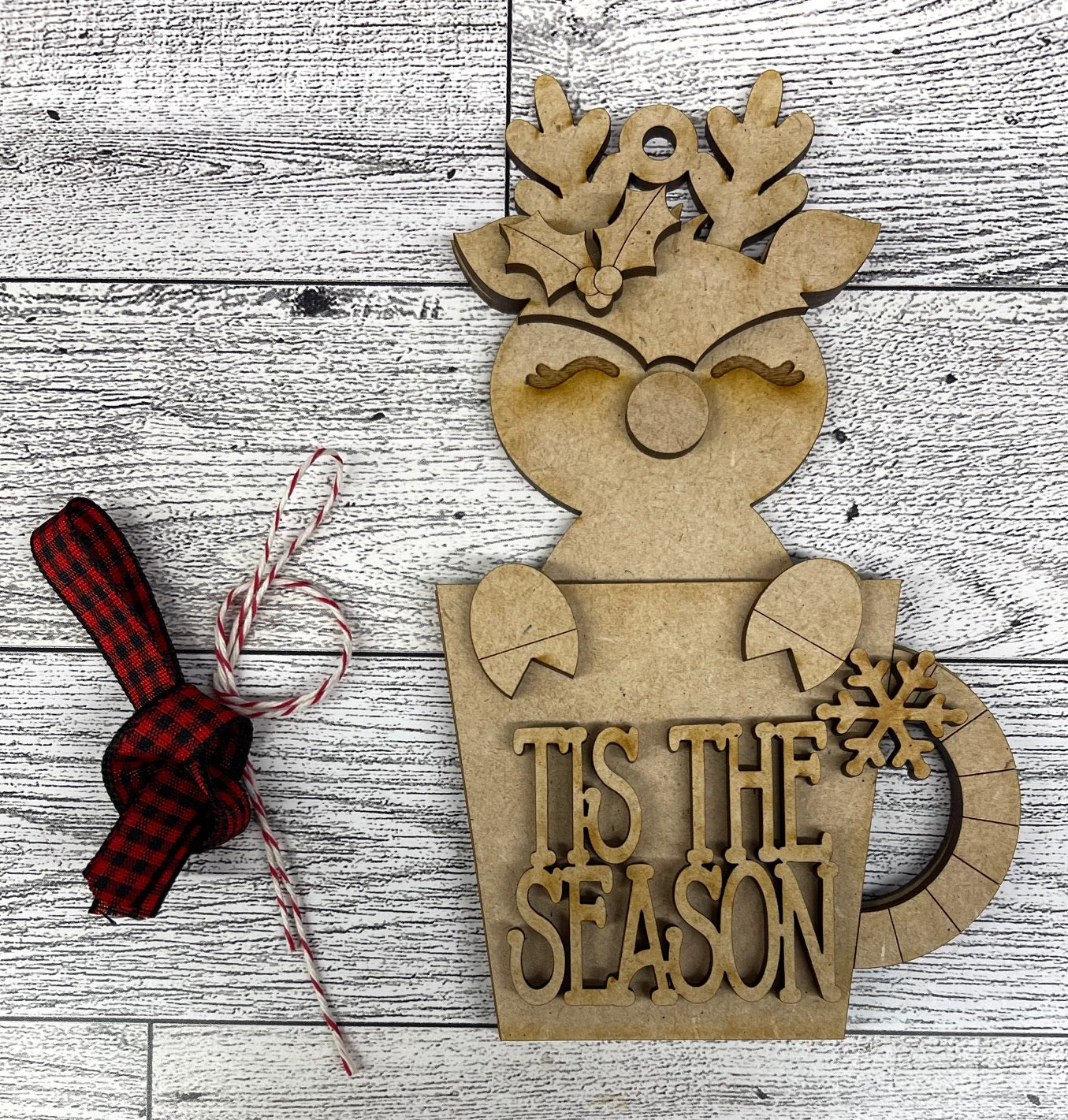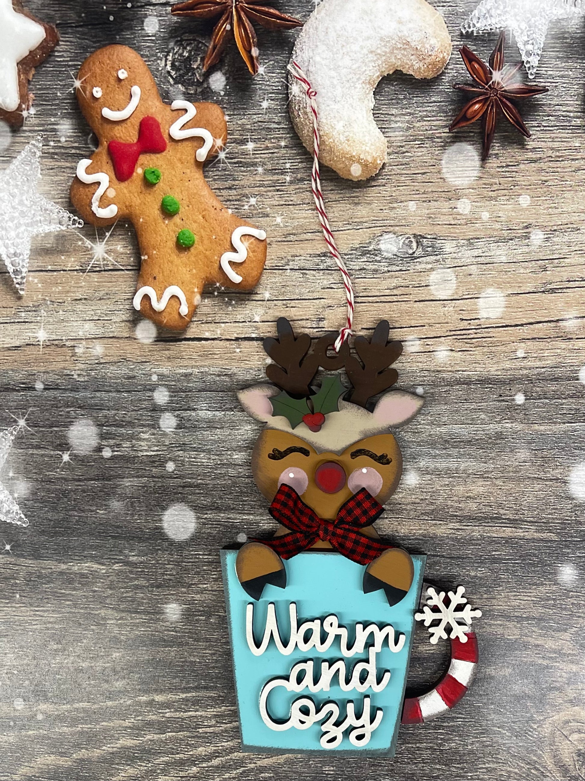 Reindeer Hot Cocoa Christmas Ornaments unpainted cutouts ready for you to finish painting