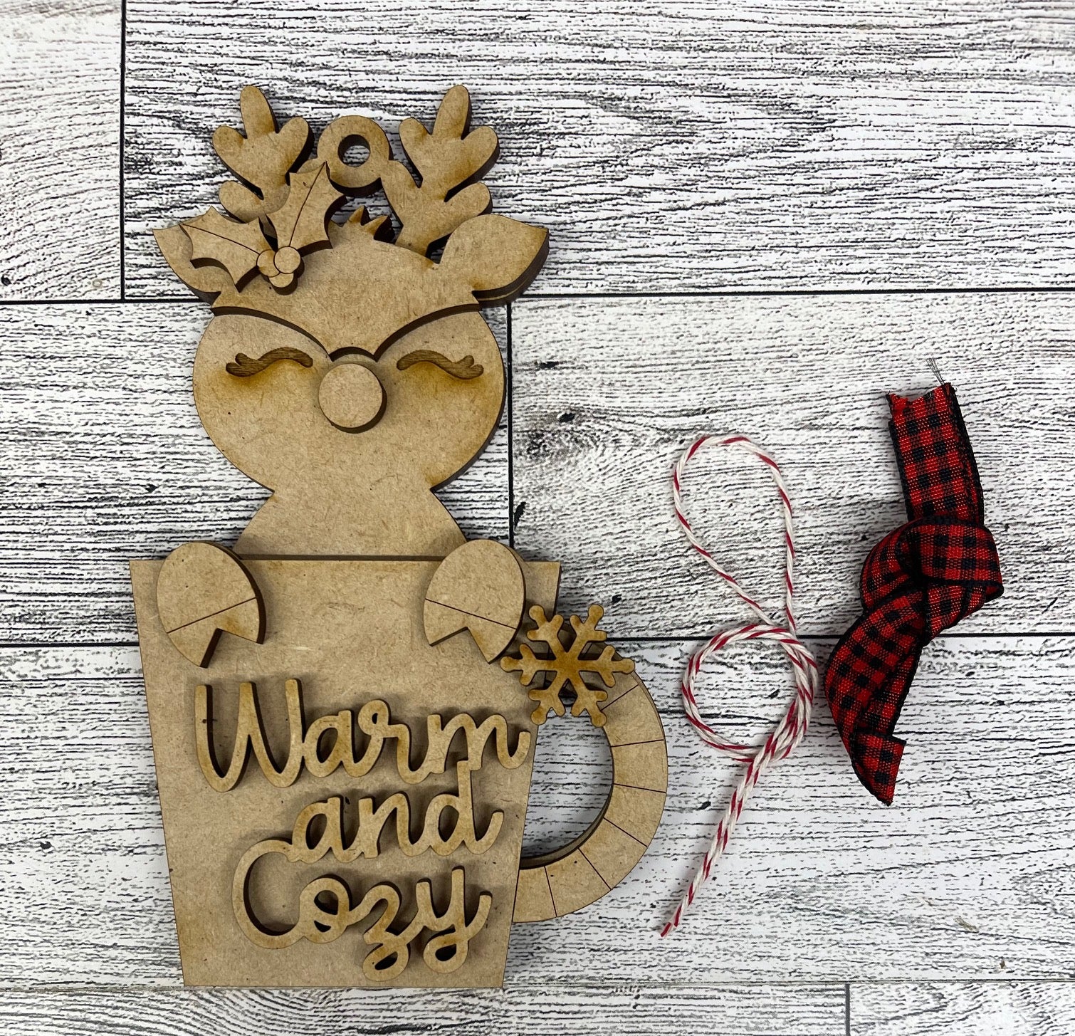 Reindeer Hot Cocoa Christmas Ornaments unpainted cutouts
