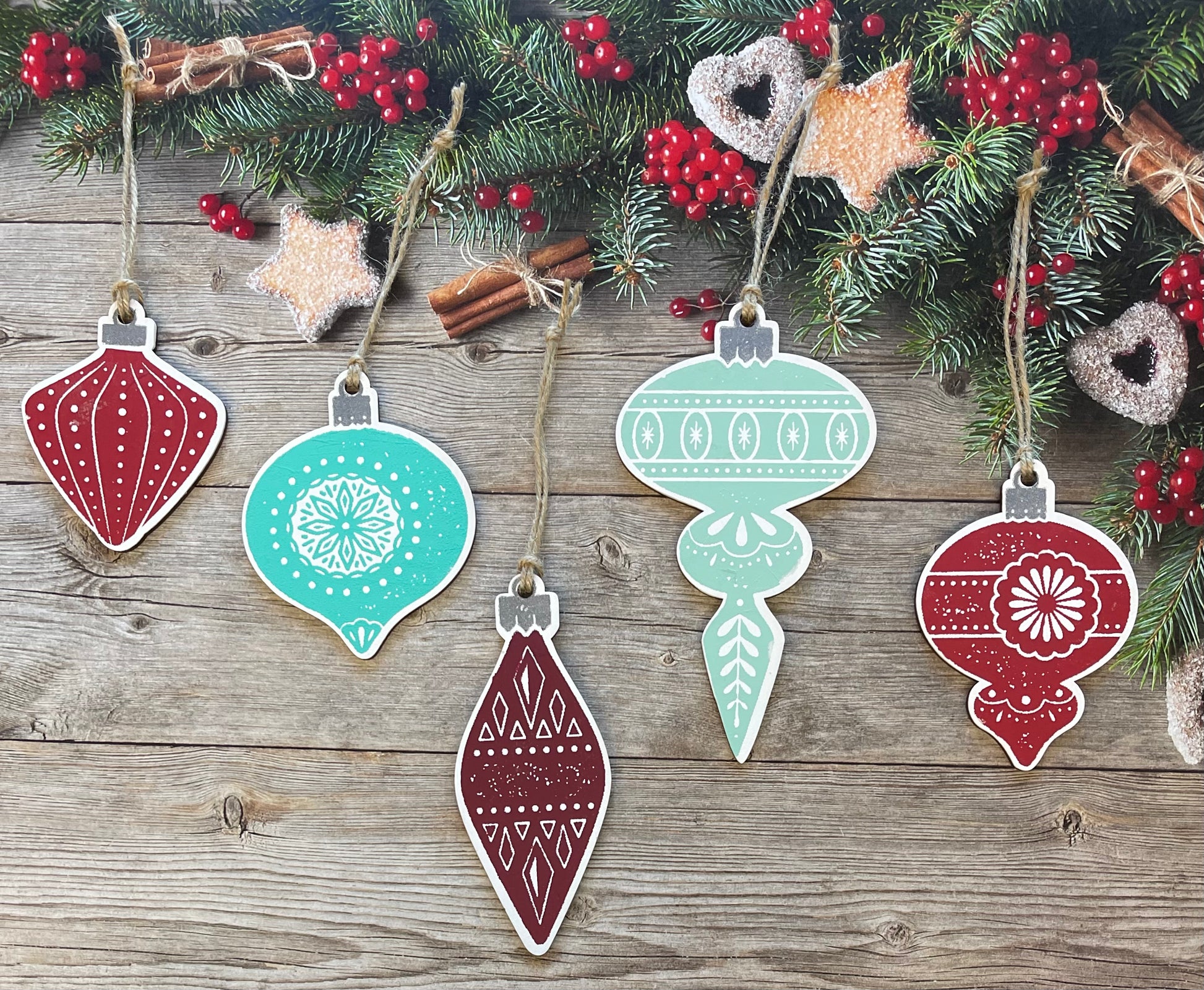 Retro Ornaments - Jolly Ornaments - Set of 5 wood ornament cutouts, unpainted ready for you to finish