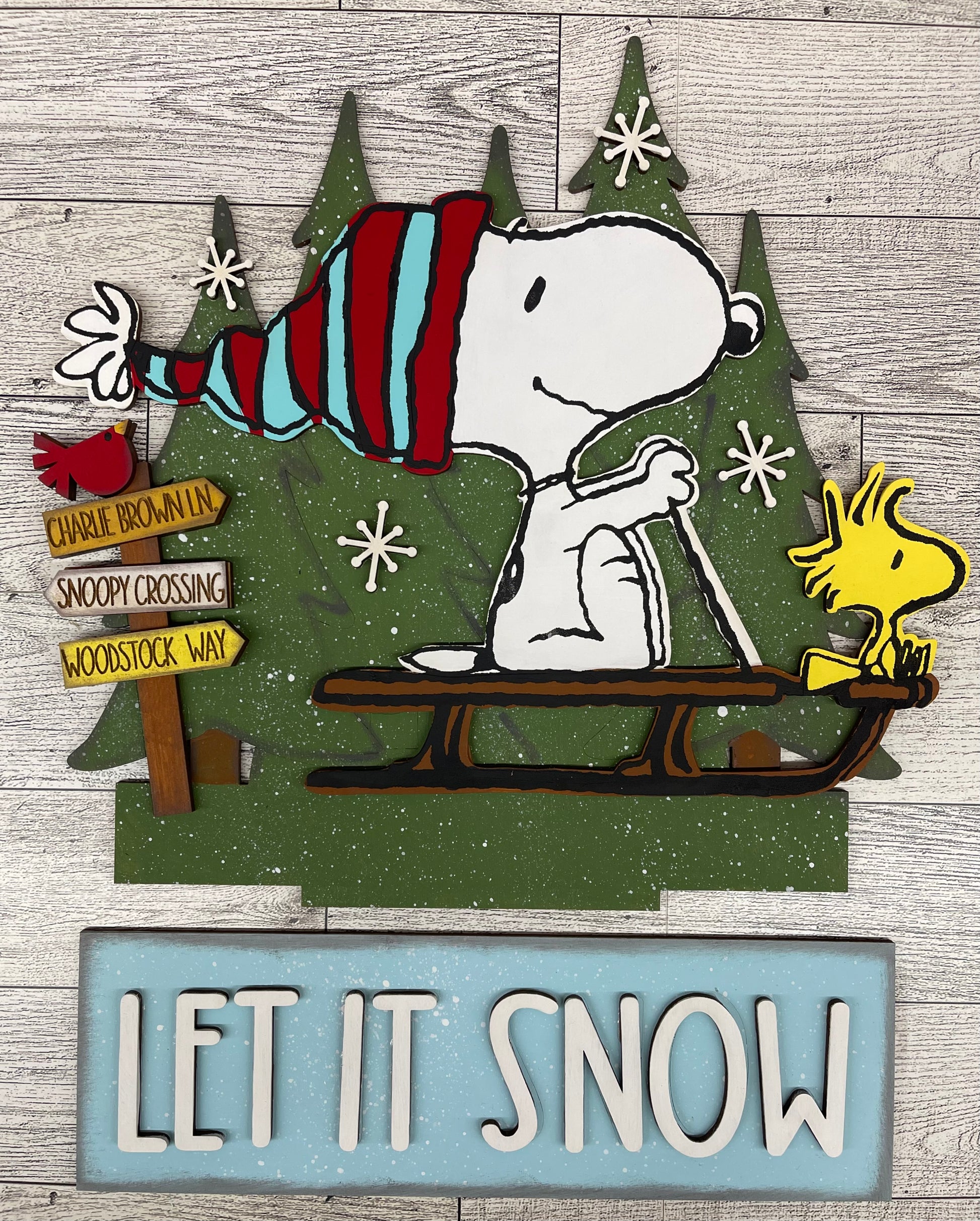 -Snoopy & Woodstock on a Sled insert for Changeable Window Box, unpainted wood cutouts ready for you to paint - the truck inserts do not fit in this. This is a lot bigger than that.