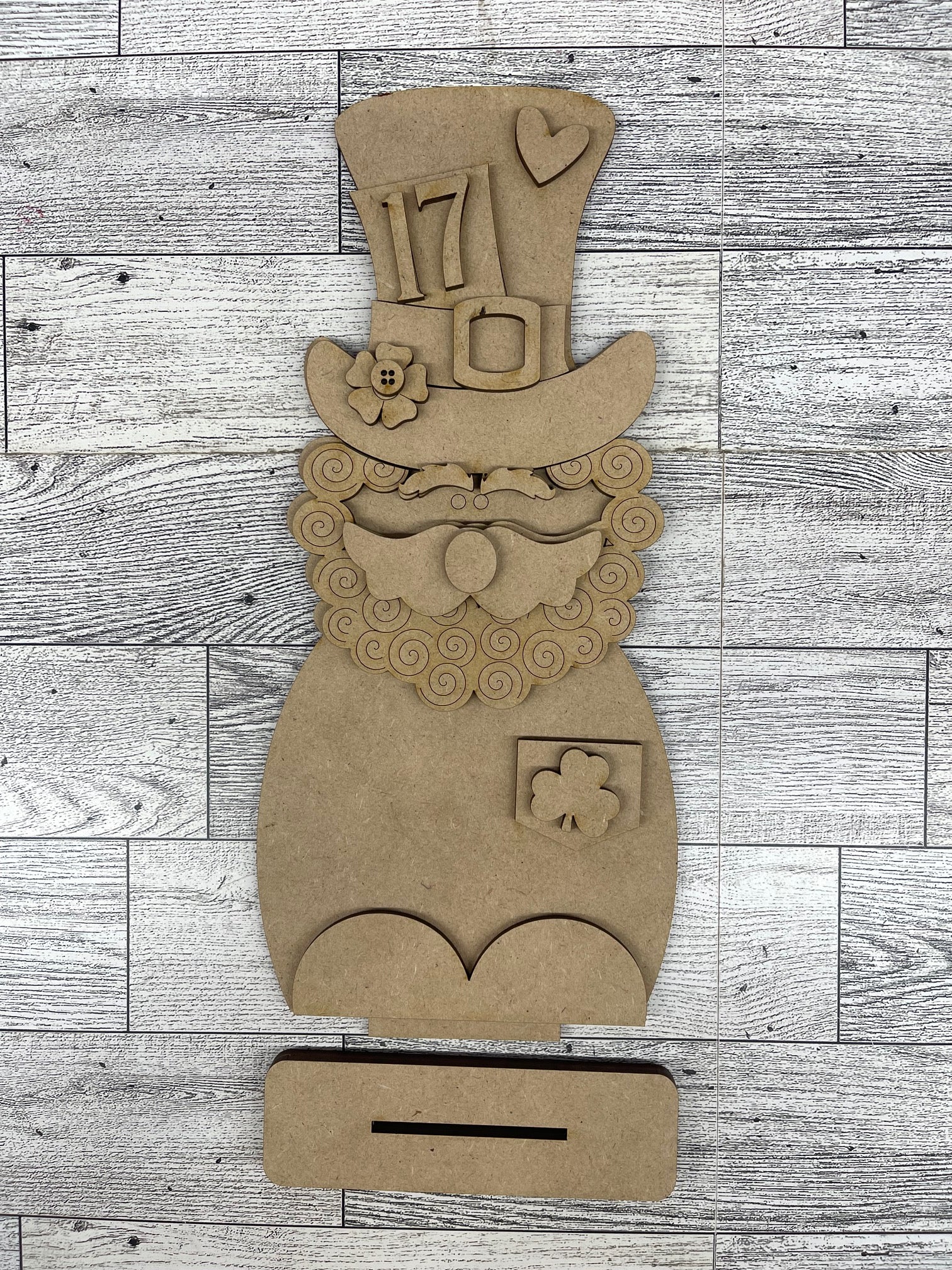 St. Patrick's Leprechaun Gnome Stander 2026 - unpainted cutouts ready for you to paint
