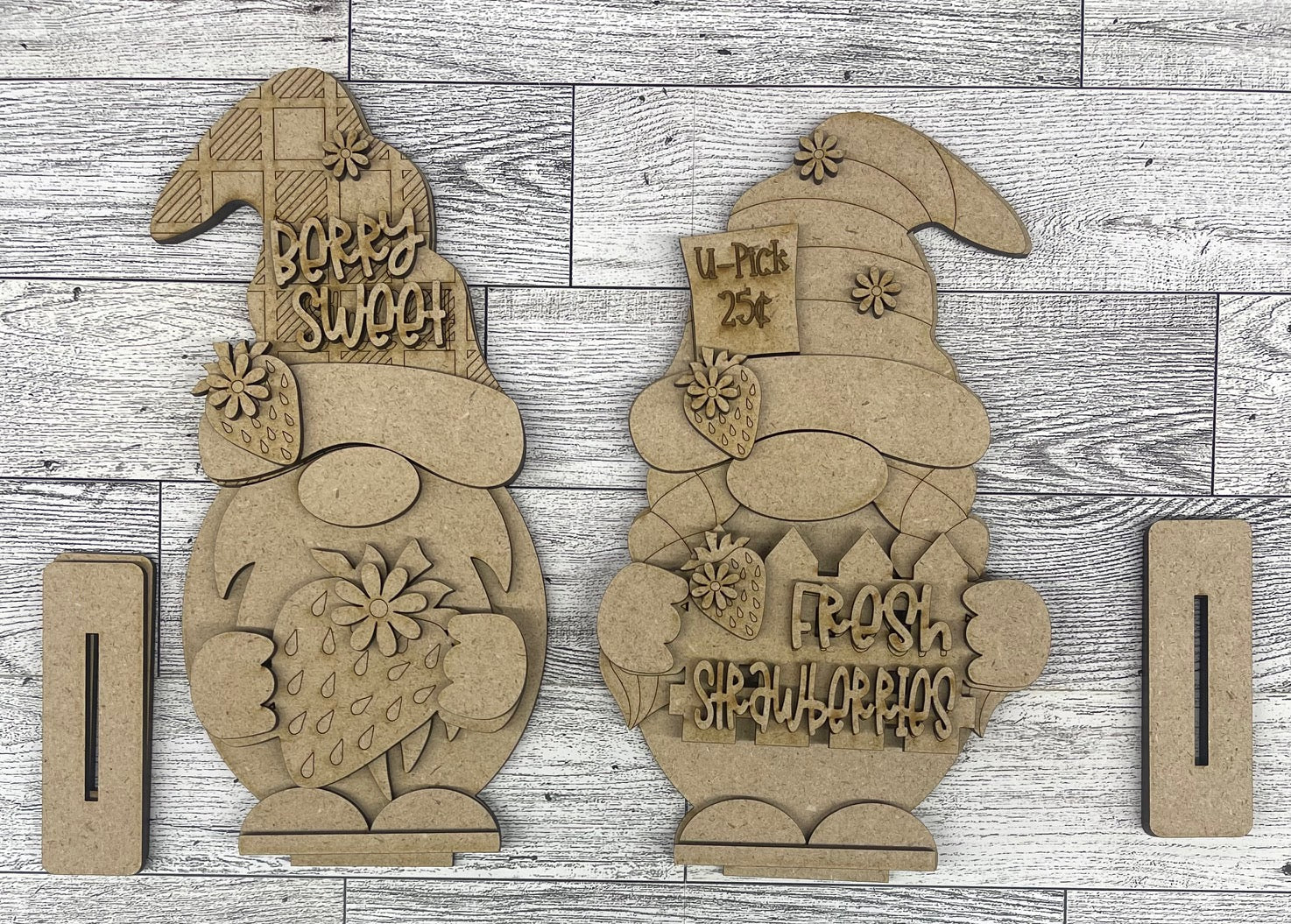 Strawberry Boy or Girl Gnome with wood cutouts, unpainted wooden cutout - ready for you to paint