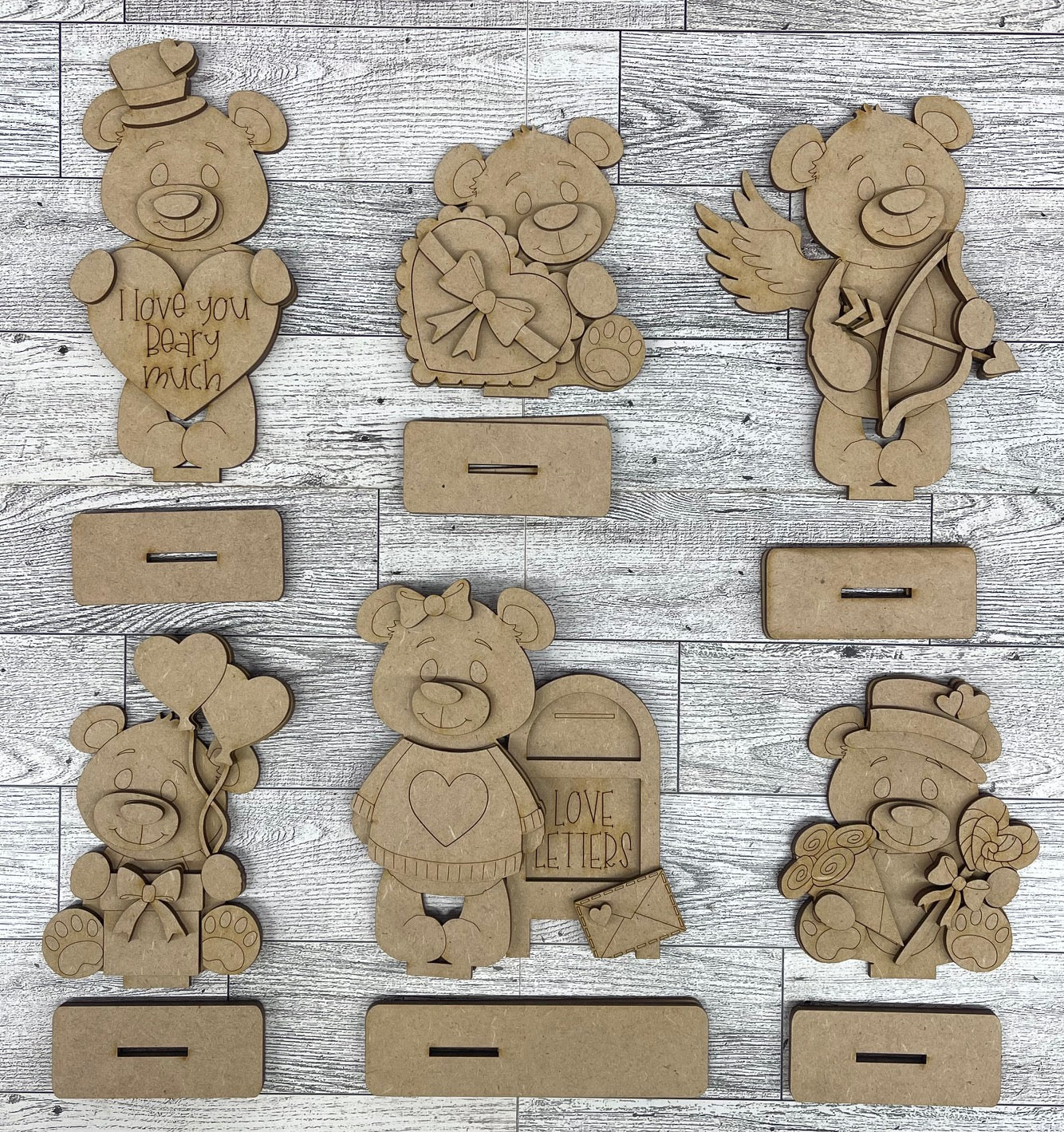 Valentine's Bear Standers - Set of 6 - unpainted cutouts ready for you to finish