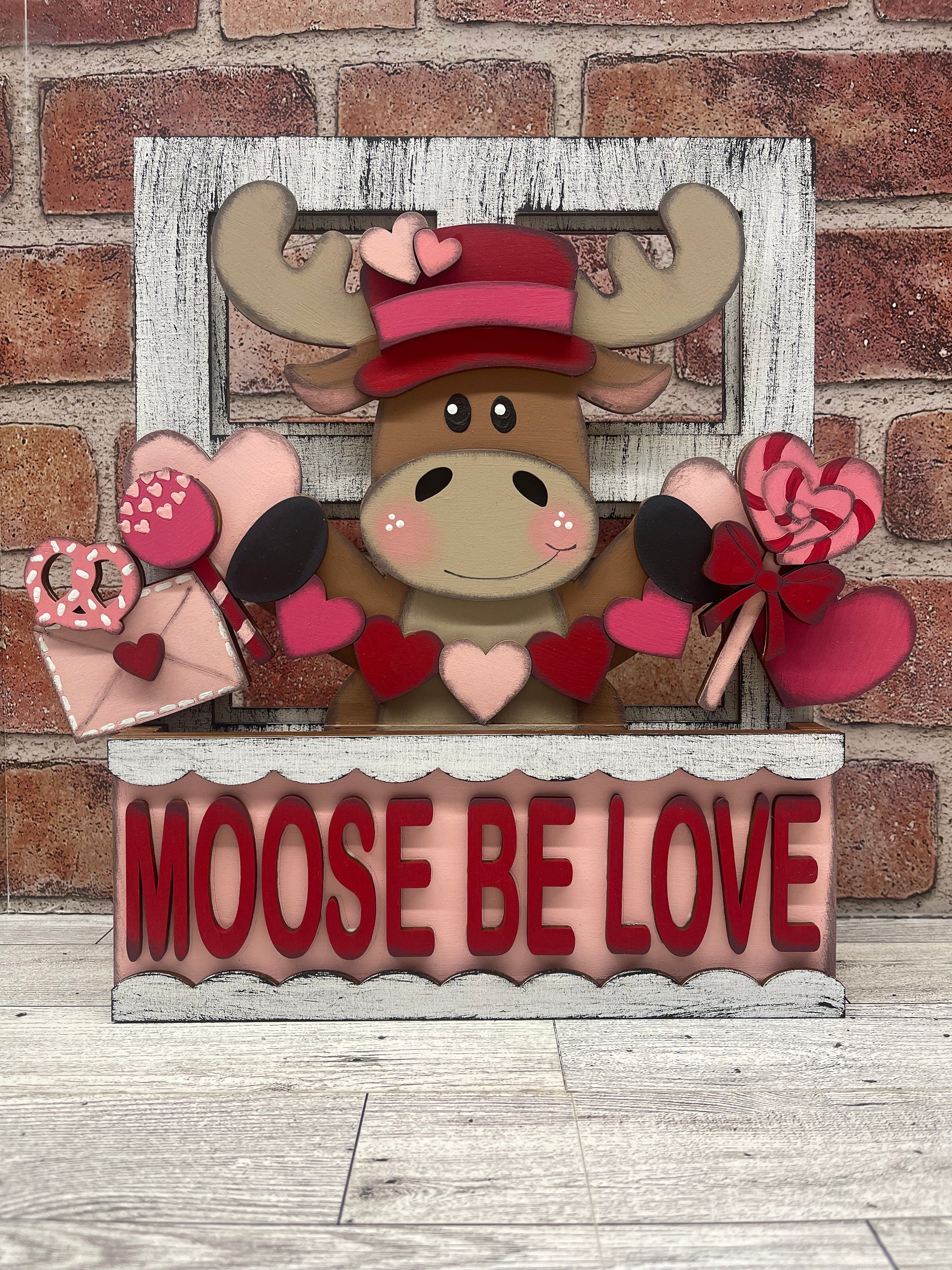 Valentines Moose - Insert for Changeable Window Box unpainted wood cutouts, ready for you to paint