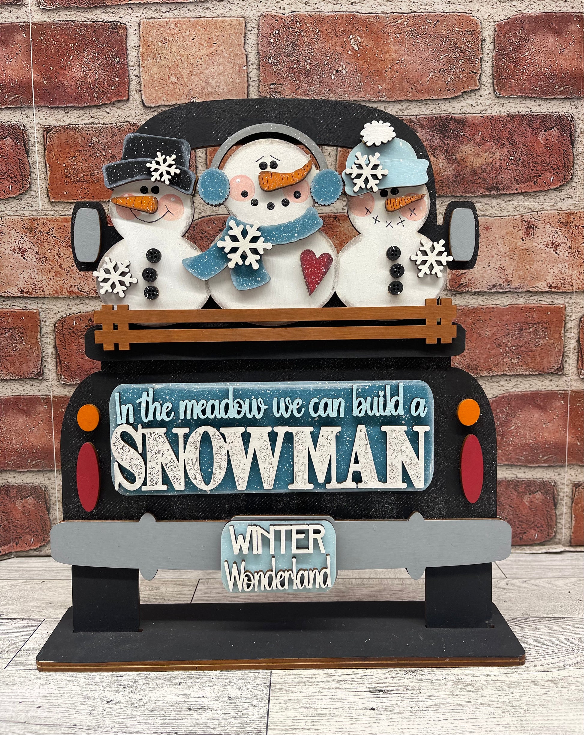 Winter - Snowmen - In the meadow we can build a Snowman Truck insert only, unpainted wood cutouts, ready for you to paint, does not include truck